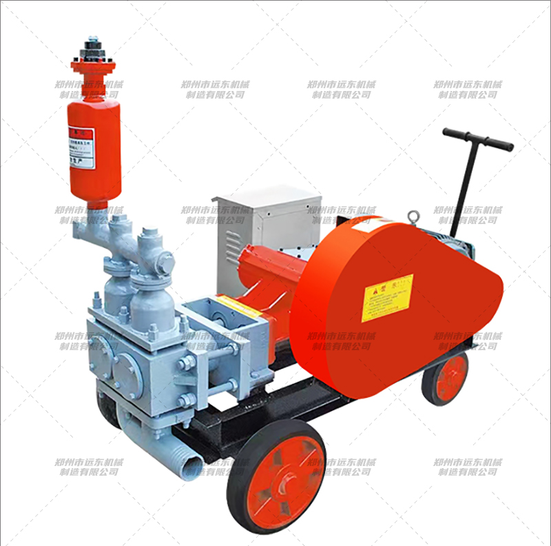 80-6型雙缸砂漿泵為臥式雙作用往復式活塞泵,該泵雙缸獨立,有兩個吸、排漿口能進行雙液注漿作業(yè),注漿速度由變速箱控制分4種速度,相對應不同的出漿排量。主要用于軟基加固,隧道超前預注漿,堵水及破碎巖石的固結注漿工程;工作時兩缸同時輸出漿液,通過混合器,混合可達到較準確的混合比例,對漿液的凝膠時間更容易控制,從而能有效地掌握漿液的擴散半徑,進而提高注漿工程的質量,降低注漿工程的成本。